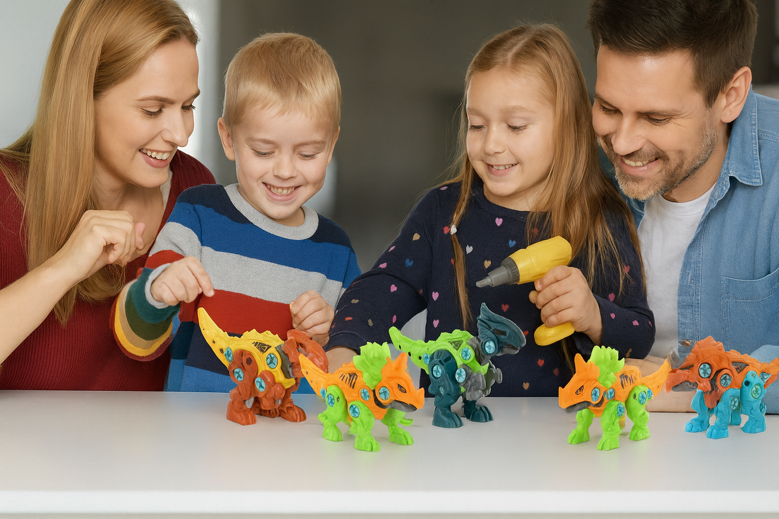 Mein fünfjähriger Sohn liebt diese Dinosaurier absolut. Er konnte den kleinen Bohrer ganz alleine benutzen, und man konnte sehen, wie stolz er war, etwas selbst gebaut zu haben. Die farbcodierten Teile machten es ihm leicht, mitzukommen, und sie hielten ihn stundenlang beschäftigt – ganz ohne Bildschirm.